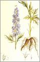 abetos, romero, lavanda, hierba doncella blanca, púrpura y azul,